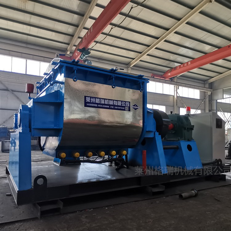 本机主要结构是由混捏部分、机座部分、液压系统、传动系统和电控系统等五大部分组成。混捏部分是由缸体、浆轴、墙板、缸盖等组成。液压系统由一台液压站来操纵大油缸,来完成启闭功能,液压系统由一台液压站来操纵油缸,来完成启闭大盖、闭合翻板等功能;电控系统有手动、自动电控系统,由用户任意选择和要求,操作方便、可靠。传动系统由电机、减速机和齿轮组成、根据捏合机混捏锅的型号配套电机。在传动过程中,可由电机同步转速,经弹性联轴器至减速机后,由输出装置传动快浆,使其达到规定的转速,也可由变频器进行调速。