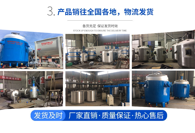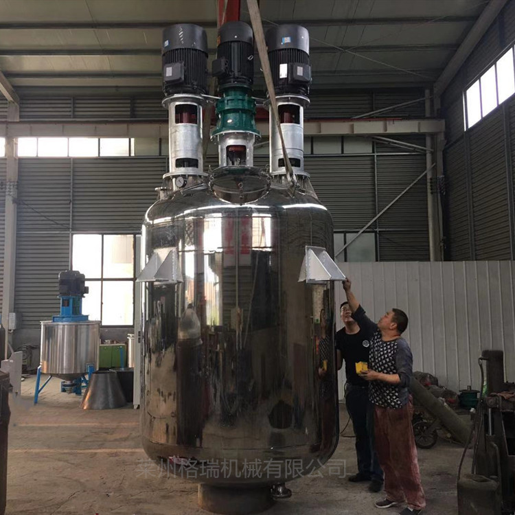 反应釜采用SUS304、SUS316L等不锈钢材料制造,搅拌器有锚式、框式、桨式、涡轮式、刮板式、组合式,转动机构可采用摆线针轮减速机、可满足各种物料的特殊反应要求。无级变速减速机,密封装置可采用机械密封,加热冷却可采用夹套、半管、盘管、米勒板等结构,加热方式有蒸汽、电加热、导热油,以满足耐酸、耐高温、耐磨损、抗腐蚀等不同工作环境的工艺需要。工艺先进、结构合理、经久耐用,并具有耐高温、耐腐蚀、使用方便等特点,目前已广泛应用于石油、化工、橡胶、农药、染料、医药、食品、科研等行业,用来完成硫化、硝化、氢化、烃化、聚合、缩合等工艺过程,以及有机染料和中间体等其他许多工艺过程的反应设备。可根据用户工艺要求进行设计、制造。
