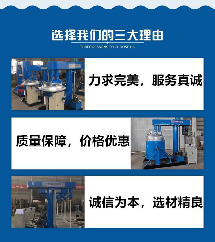 采用电磁调速、变频调速等各种规格、运转稳定有力,适用各种低粘度液体;液压、机械两种升降形式,升降旋转自如,适应各种位置;普通及防爆配置,操作维护简单;生产连续性好,对物料可进行快速分散和溶解,分散效果好,生产效率高,运转平稳,安装简便。针对不同物料的粘度及处理量有不同的功率及型号。