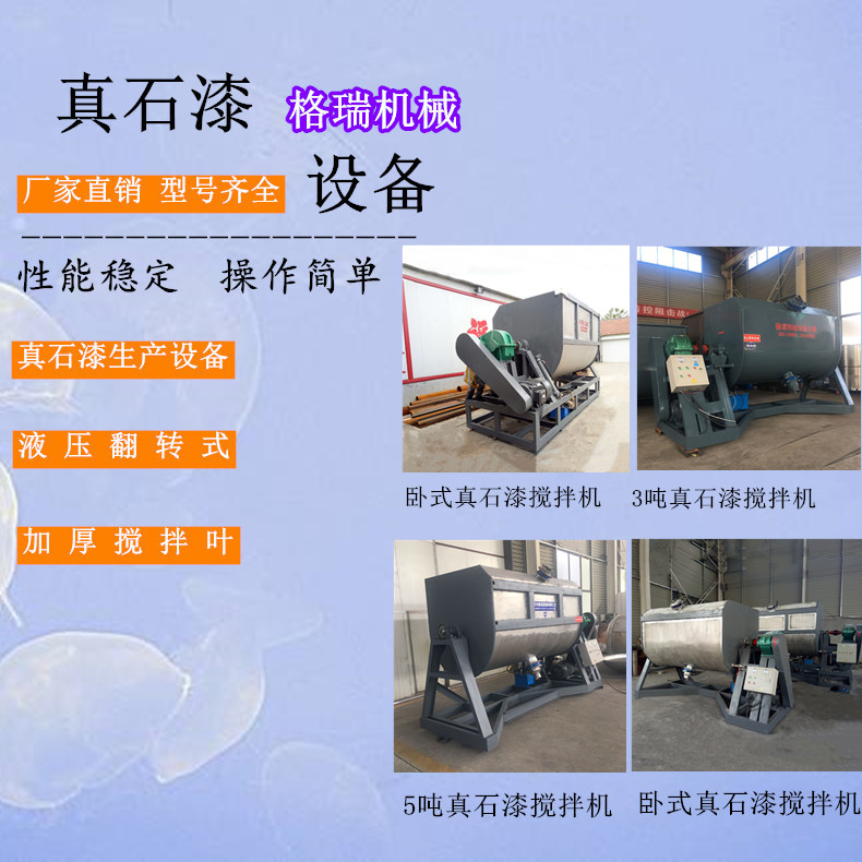 真石漆混合机说明: 也可用于腻子膏的制作。是一种生产真石漆涂料的设备。真石漆是一种很稠厚的厚质建筑涂料,是用合成树脂乳液与不同级配的彩砂粒子及多种助剂配制而成的,它的生产过程与一般建筑涂料的生产过程是不相同的,不需要通过高速搅拌或研磨等工序,主要是物料搅拌的过程,因此不能使用普通涂料的生产设备,应当使用适合于搅拌稠厚料浆的搅拌机进行生产。本公司生产的真石漆搅拌机分卧式和立式两种,客户可根据自己的实际生产场地来决定选择适合的机型。具体可咨询本公司技术人员。