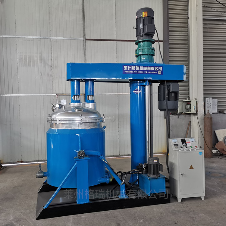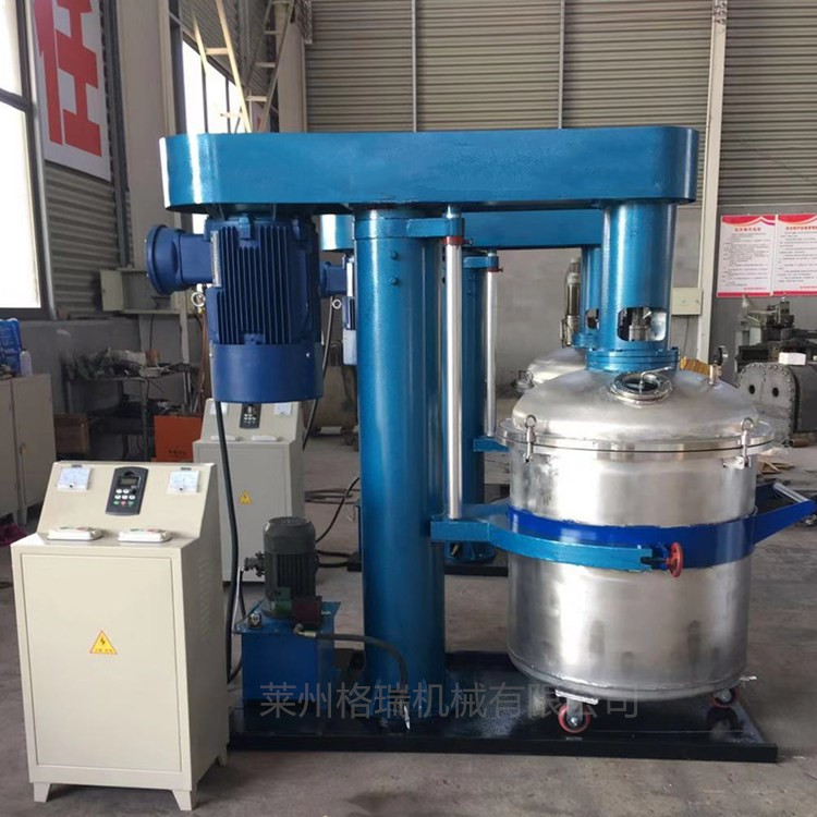 真空分散机是可以升降的真空搅拌机,能抽真空。升降式真空搅拌机可以升降,旋转,搅拌分散。真空搅拌机系籍由电动机全速运转带动主轴,经主轴转动乳化框槽内之乳化翼片,使其将桶槽内之液体经框槽上、下两侧之导流叶片吸入环状框槽内,经以主轴为中心高速旋转叶片;连续使乳化翼端刀面与乳化框之间系高频率之强力切割剪断、粉碎,再借叶片高速离心旋转,持续循环混合,以短之时间即可完成均质乳化之处。